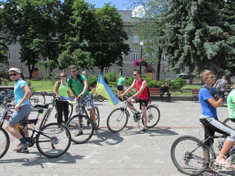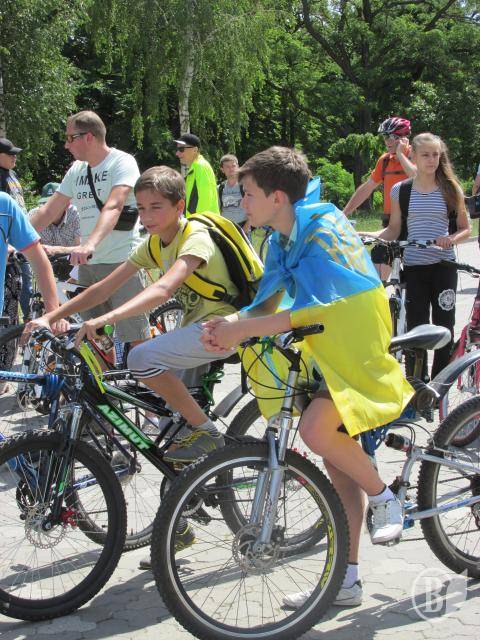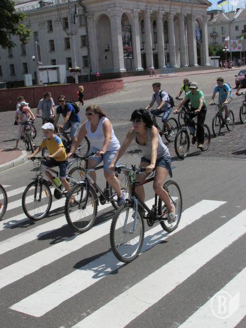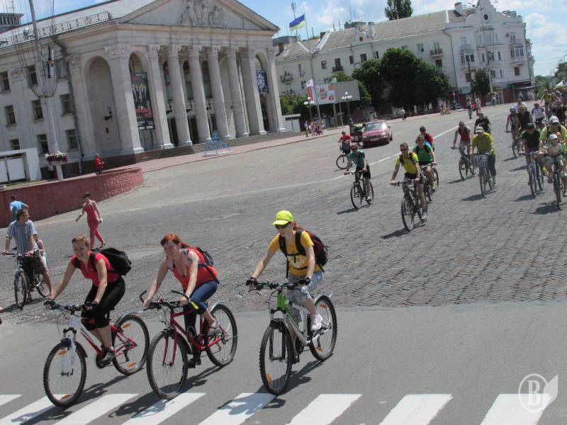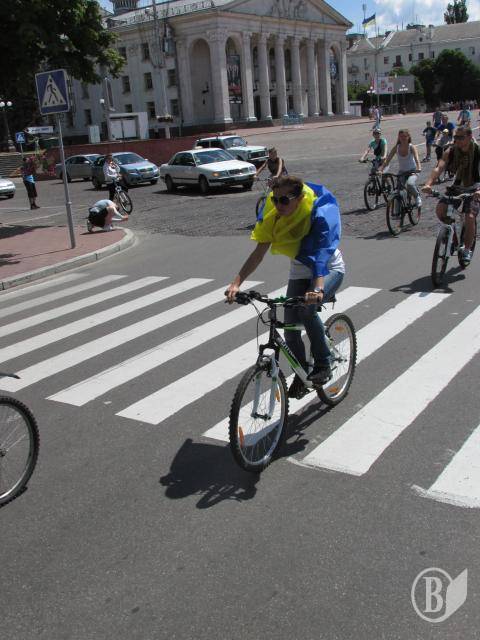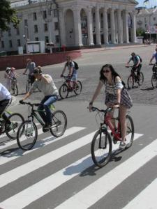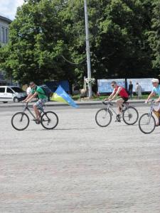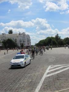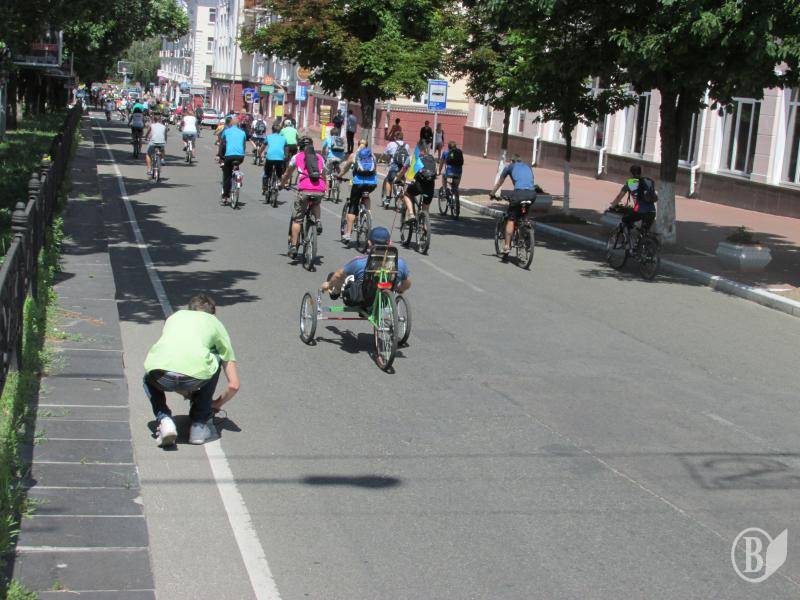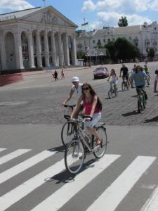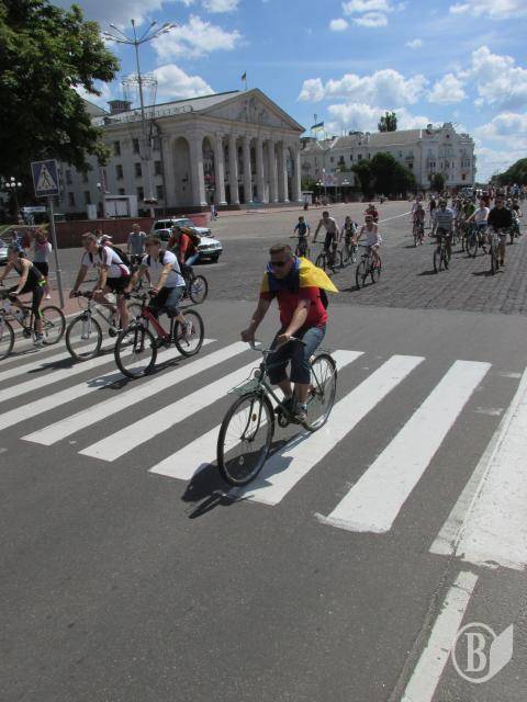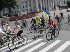 У велодні, який проходив у Чернігові 18 травня взяло участь близько 1600 учасників, які утворили на Красній площі фантастичну фігуру «живого велосипеда».
