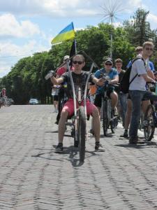 На цей раз на заклик організаторів зібралося менше людей, однак навіть така кількість свідчить – Чернігів потребує розвитку велоінфраструктури. Про найпоширеніші проблеми чернігівських любителів двоколісних – відсутність у місті спеціальних велодоріжок та хамовитих водіїв автомобілів розповідає Валерій – власник чи не найекзотичнішого триколісного велосипеда.