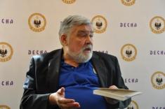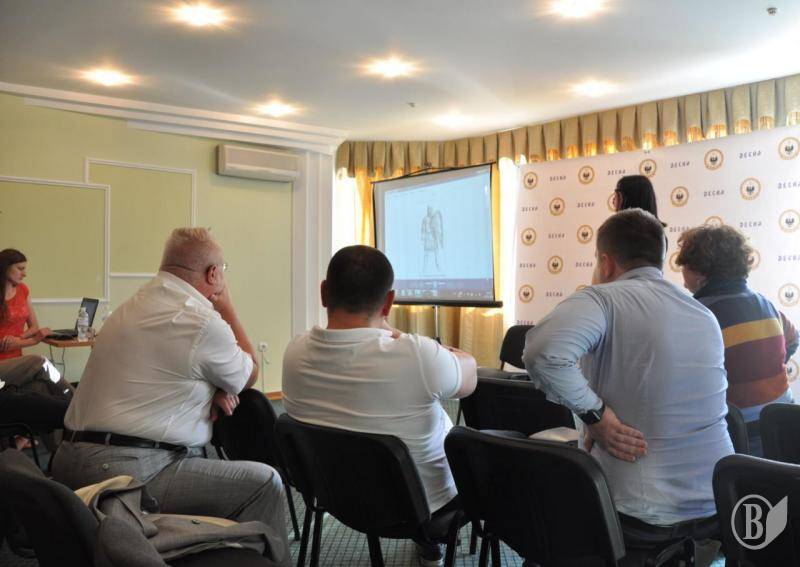 Спікери, яких було запрошено до слова, представили інформацію з історії клуба та Чернігівщини. «Нинішня емблема практично копіює емблему Латвійської федерації футболу. Історичні кольори «Десни» – біло-блакитні, на цьому й варто зосередити основну увагу», – висловив свою думку знавець історії чернігівського футболу Віктор Муха.
