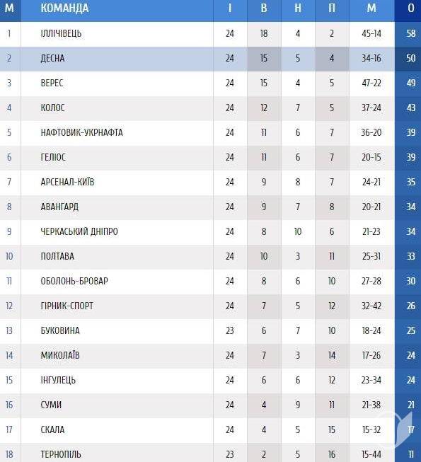 Чернігівський футбольний клуб «Десна» після перемоги над ФК «Тернопіль» з рахунком 2:0 знаходиться на 2 рядку згори в турнірній таблиці.