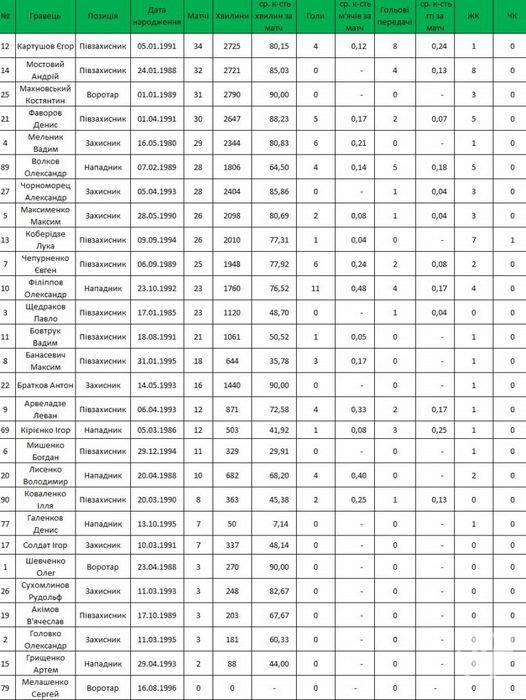 Клуб пропонує статистику виступів своїх гравців в історичному сезоні, в якому, нагадаємо, деснянці вперше в своїй історії завоювали срібні нагороди Першої ліги.