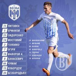 «Десна»: Литовка, Єрмаков (Мельник, 80), Головко, Сидоренко, Мостовий, Огіря (Гадрані, 80), Чумак (Волков, 68), Коберідзе, Фаворов А. (Арвеладзе, 68), Банасевич, Безбородько.