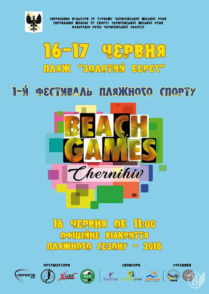 Крім того, протягом двох днів - 16 та 17 червня - на міському пляжі «Золотий берег» проходитиме І-й фестиваль пляжного спорту "Beach games Chernihiv".