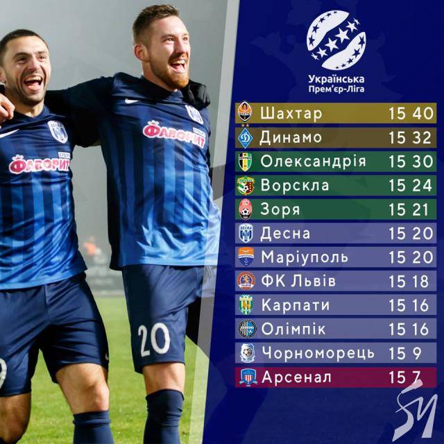 За підсумками 15 туру Української Прем'єр ліги чернігівський футбольний клуб «Десна» піднімається на 6 сходинку турнірної таблиці!