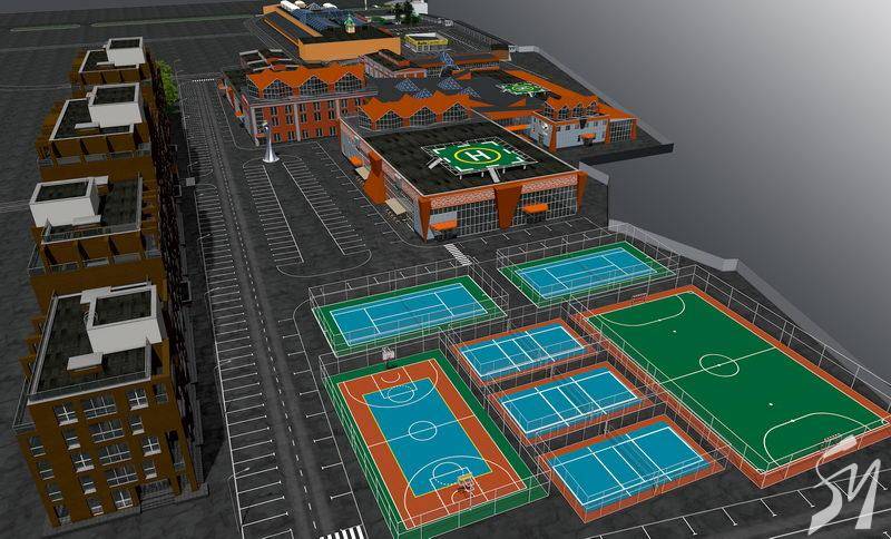 Перелік передбачуваних залів та інших приміщень в майбутньому спортивному комплексі:зал ДЗЮДО та інших видів рукопашної боротьби, зал боксу , зал атлетичної підготовки, універсальний зал для гімнастики та спортивних рухливих ігор, зал фітнесу, зал настільного тенісу, методичний клас, відкриті гімнастичні містечка, відкритий волейбольний майданчик, відкритий майданчик рукопашного бою, відкритий ігровий майданчик з баскетболу та міні-футболу, взимку облаштування льодового катка та інше. Передбачено, що даний комплекс буде перебувати у власності громадського спілки, учасники якої вже розроблюють стратегічний план витрат та доходів від діяльності комплексу