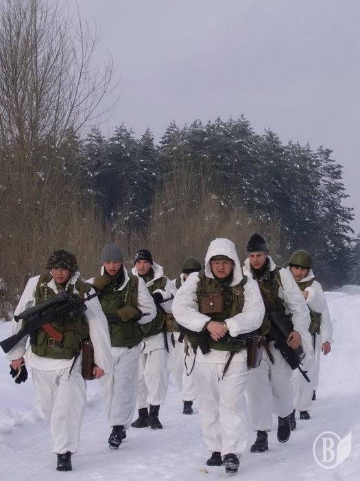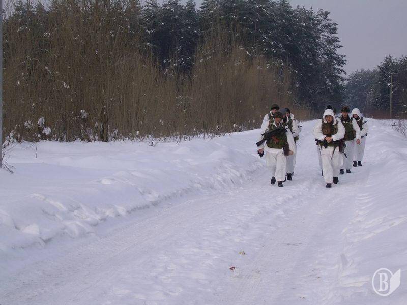 Та перш ніж приступити до військової техніки, вони спочатку позаймалися в класах на лекціях і семінарах, а сьогодні зранку здійснили 5-кілометровий піший марш-кидок «з повною викладкою».
