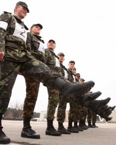 150 военнослужащих 1-й гвардейской отдельной танковой бригады 8-го армейского корпуса Сухопутных войск Вооруженных Сил Украины, что в Гончаровском на Черниговщине, готовятся к параду по случаю 65-й годовщины победы.