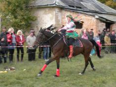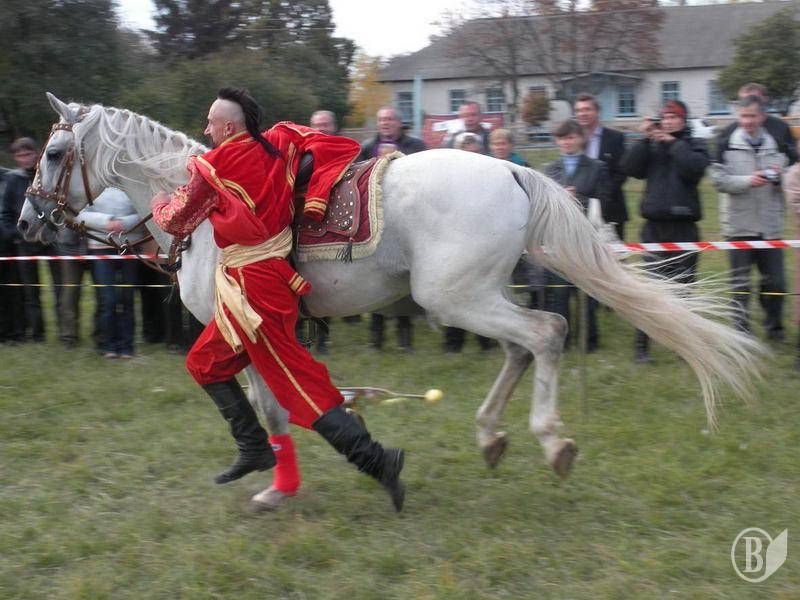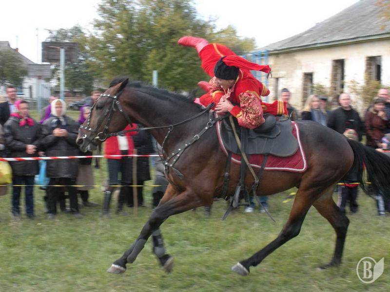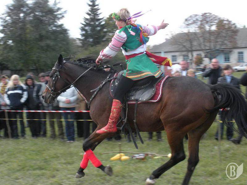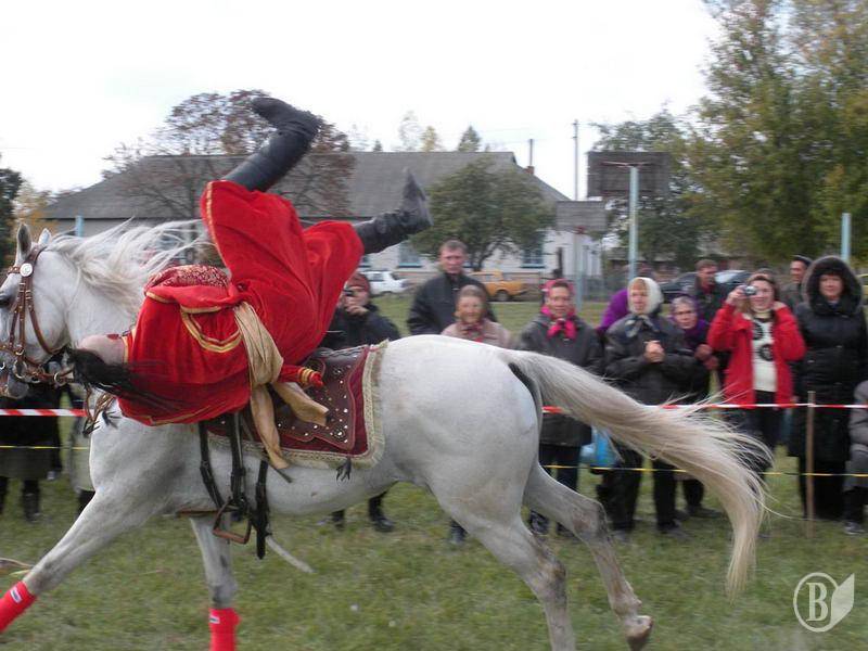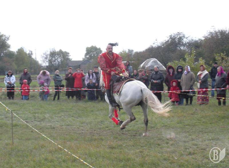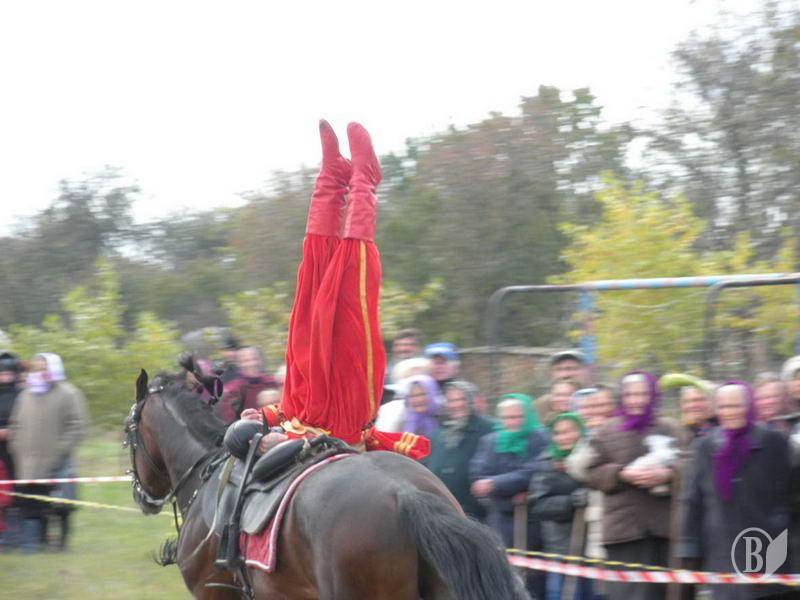Жители села и гости праздника в Лукашовке с восторгом наблюдали сначала за разминкой артистов, которые в ходе «казацких развлечений» рубили саблями кабачки, ловили кольца на сабли, а также снимали кольца копьями (и все это верхом на конях).