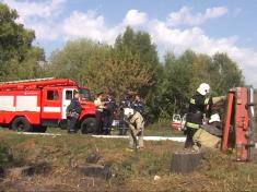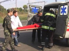 Крім того, за раптовою ввідною, внаслідок ДТП біля АЗС перекинувся легковий автомобіль та потрібна була допомога по деблокуванню постраждалого. За допомогою спеціального обладнання рятувальники провели комплекс невідкладних робіт та дістали потерпілого. Після чого його каретою швидкої допомоги було доставлено до лікарні. Всі спеціалізовані аварійно-рятувальні служби працювали злагоджено та професійно.