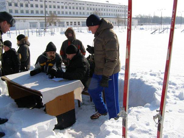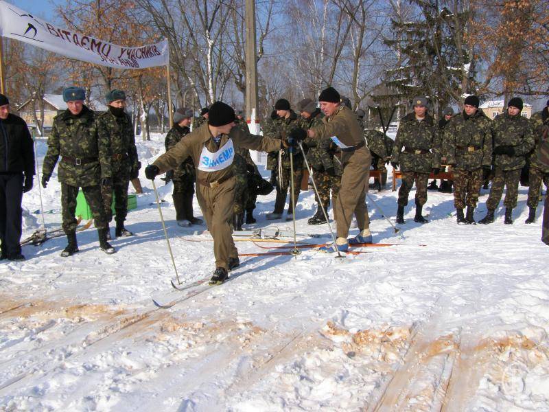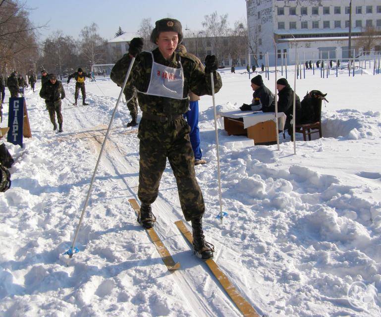 Команду кожної роти представляли 4 строковики. Кожен повинен був проїхати на лижах півтори кілометри і передати естафету своєму товаришу. Найкращий командний результат – 6 кілометрів за 30 хвилин. А в особистому заліку відзначився курсант Михайло Чигмарьов. Він пробіг на лижах півтори тисячі метрів всього за 7 хвилин.