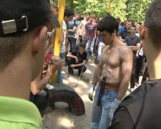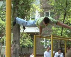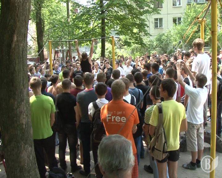- Спочатку я щоранку вибігав у двір просто попідтягуватися на турніку, розповідає організатор чемпіонату Олександр Сердюк, - здружився у дворі зі своїми однодумцями, скинулися грошима й облаштували нормальний майданчик. Тепер до нас навіть гості з Росії та Білорусі приїздять.