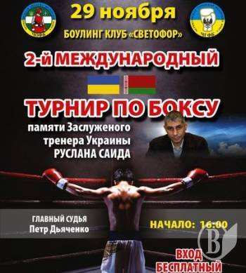 Очередной, второй международный турнир по боксу, посвященный памяти Заслуженного тренера Украины Руслана Саида, состоится 29 ноября в развлекательном комплексе “Светофор”.