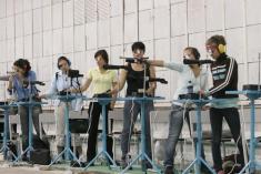В пистолетном упражнении девушки выполняют 40 выстрелов на 10 м, ребят, – по 60 выстрелов. В стрельбе по подвижной мишени девушки производят 20 выстрелов по медленной и по быстрой мишени, ребята – по 30 выстрелов. Упражнения выполняются дважды, результат вычисляется по сумме двух повторов.