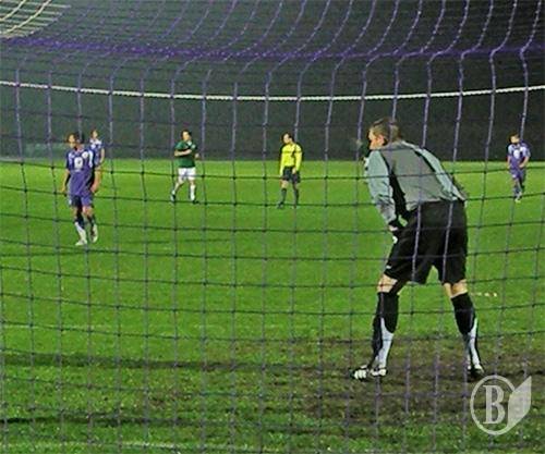 2 секунды тому назад Кучеренко забил гол, деснянець забирает м\'яч, чтобы снова стать игру