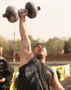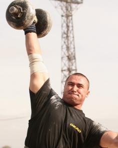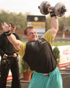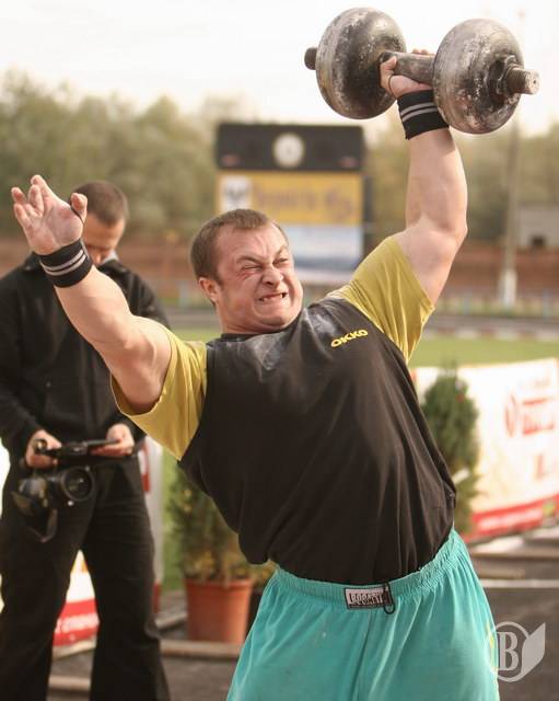 У вправі "Гантеля дамбл" спортсмени змагалися у кількості повторень підйому гантелі вагою 75 кг.