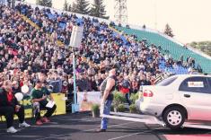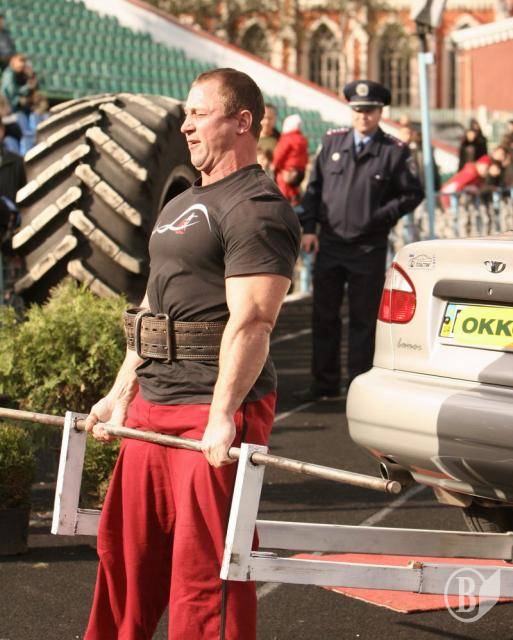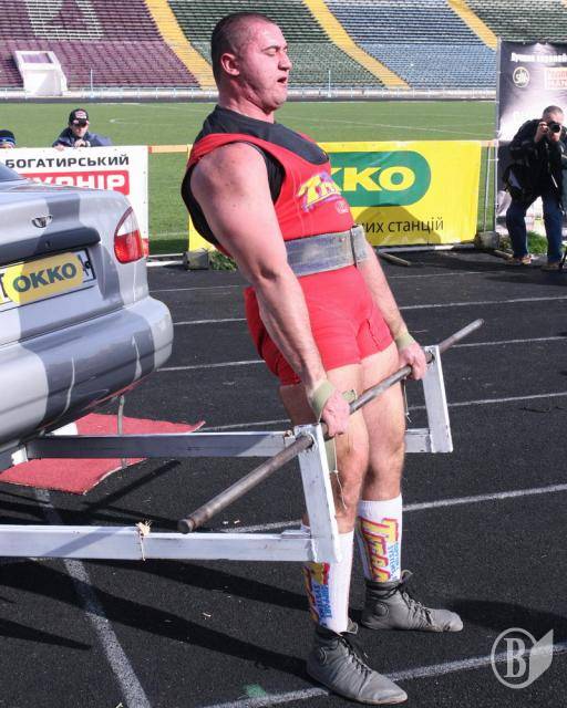 У вправі " Станова тяга" спортсмени змагалися у підніманні народного авто Daewoo-Lanos.
