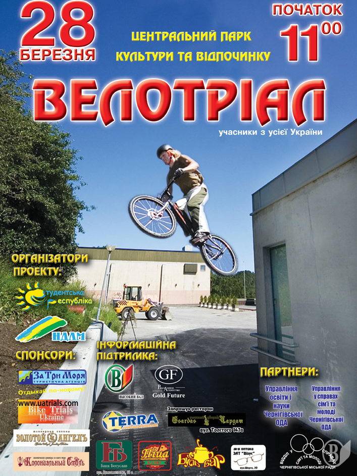 28 березня у центральному парку культури та відпочинку об 11:00 розпочнуться відкриті змагання м.Чернігова з велотріалу.