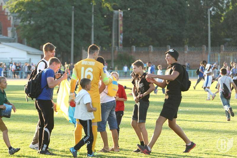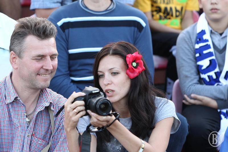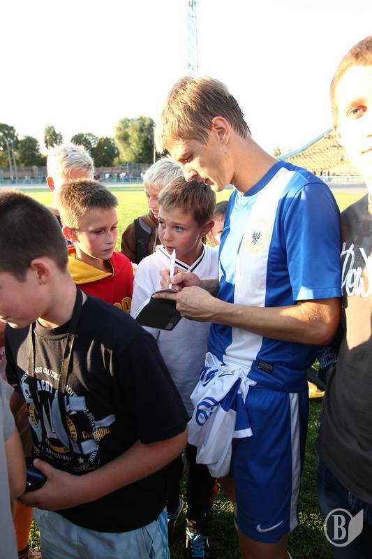 В первом тайме вместо того, чтобы наблюдать футбол, ребята постоянно раздавали автографы и фотографировались со всеми желающими. Не выдержав такого придирчивого внимания, на второй тайм футболисты «Днепра» решили не возвращаться на трибуны, а наблюдать игру около подтрибунного помещения. Но больше всего внимания было уделено капитану днепрян — Руслану Ротаню.