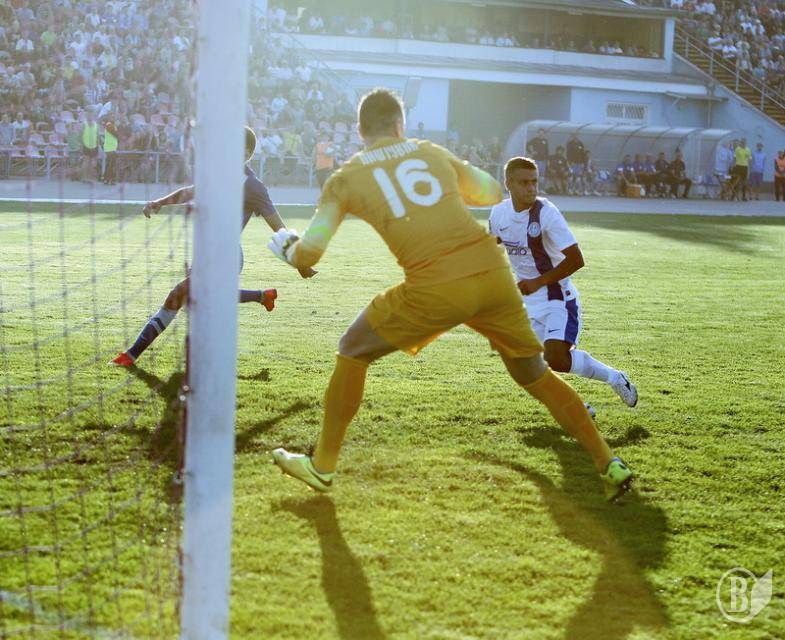 Вадим нанес неплохой удар и мяч прошел рядом с крестовиной. «Днепр» после такой пощечины не стал отсиживаться в обороне и перешел в атаку. Благодаря голкиперу «Десны» днепрянам так и не удалось удвоить счет.