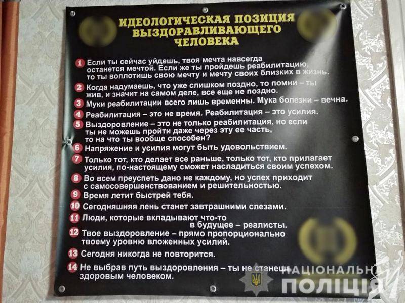 «Поліцейські встановили, що до центру могли потрапити як нарко- та алкозалежні, так і особи, які з певних причин не вгодили своїм родичам. Будь-який громадянин міг домовитися з організатором про поміщення людини в цей заґратований будинок, — розповідає начальник Головного управління Національної поліції в Чернігівській області Володимир Нідзельський, — Для цього необхідно було просто вказати пальцем на «пацієнта». За людиною в будь-яку точку України одразу виїжджала група чоловіків та примусово доставляла її в Чернігів».
