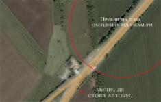 Сам автобус знаходиться за камерою. На відео праворуч від траси можна побачити тінь від вибуху після падіння снаряду поряд із автобусом.