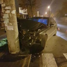 Ввечері 31 жовтня в Чернігові водій вгатив легковиком Mercedes у стовп на вулиці Гетьмана Полуботка відразу після повороту на неї з вулиці Пушкіна.
