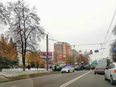 Біля коматозного готелю «Градецький» на проспекті Миру утворюється затор.