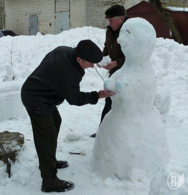 При нас дорослі чоловіки ліплять красеня-лебедя і красуню снігову... жінку. Бабою назвати витвір язик не повертається.