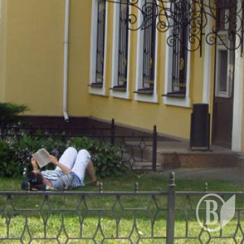 По-видимому, по этому принципу черниговчанка или гостья из белорусского Гомеля решила после обеда в воскресенье полежать на газоне и почитать умную книгу.