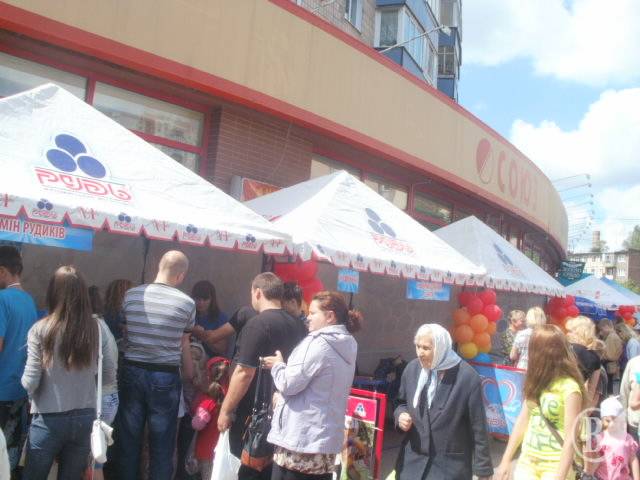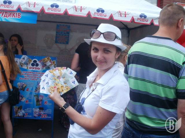 Еще до начала праздника черниговцы выстроились в очередь, чтобы обменять «фантики» на «рудики». Немало людей стояли с мешками, полными оберток.