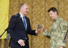 В штабі Нацгвардії презентували диск «Пісні нашої перемоги «На дальніх барикадах» Марія Бурмака, Василь Лютий, Рутенія, Шабля, боєць батальйону Національної гвардії імені генерала Кульчицького Володимир Пастушок (позивний Пісня).