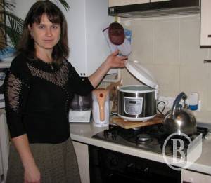 Елена Горбонос рассказывает и показывает, как в мультиварке готовит еду для своей многодетной семьи. А также демонстрирует, как с помощью электродуховки обогревает кухню и часть коридора.