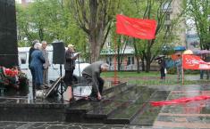 І почитала хвилин з 15, як це свято з’явилось і як святкувалося в Росії після «октябрьской революции». На знак незгоди з «російським» напрямком промови, український вітер повалив червоний прапор – мовляв – давайте про українські реалії. І тут жіночка дістала київську «Рабочую газету», сказала, що це газета комуністів і хотіла прочитати 22 гасла (російською – лозунги) з якими комуністи вийшли на Першотравень.