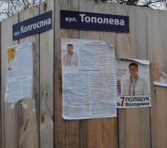 Впадає в очі, що передвиборчу агітацію позривали лише біля дільниць. На парканах, будинках прочитати «обіцянки» політиків можна було навіть в день виборів.