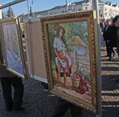 - Янукович не продається! – завчено відрубував чи то автор роботи, чи то чоловік, який його охороняв.