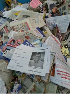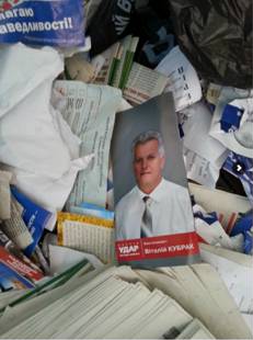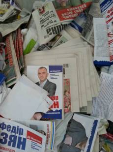 При тому, покояться там газети не лише з передвиборним матеріалом, також є і газети з критикою на мера міста М. Приходько.