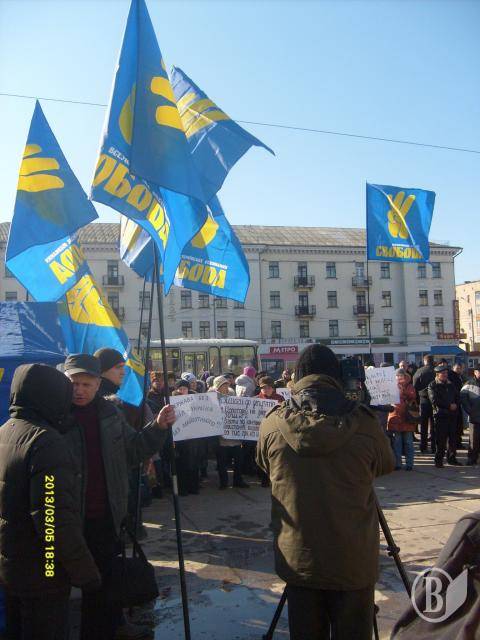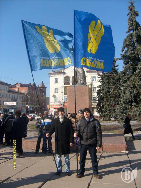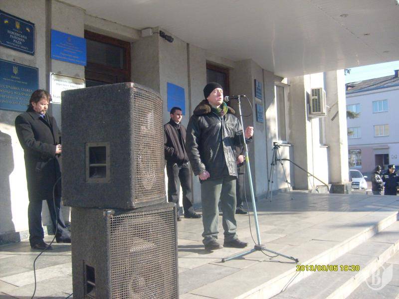 Член міського комітету ВО «Свобода» Віталій Нечеса, виступаючи перед громадою, наголосив: «Коли під час війни у Ніжин прийшли нацисти, то перше, що вони робили – закривали школи і лікарні. І коли зараз кажуть, що свободівці – нацисти, подумайте: хто закриває школи, а хто цьому протистоїть? Хто захищає майбутнє наших дітей, а хто його знищує? Яка політична сила інформує ніжинців про те, що у них відбирають школи, а хто цю інформацію приховує, і тишком-нишком хоче їх «прихватизувати»? Дайте собі чесну відповідь на це, і ви побачите, хто тут нацисти, хто тут гірший за окупантів, а хто – захищає українців». За словами свободівця, лише українські націоналісти здатні захистити українців –нині тільки вони захищають права українських вчителів, лікарів, робітників і підприємців.