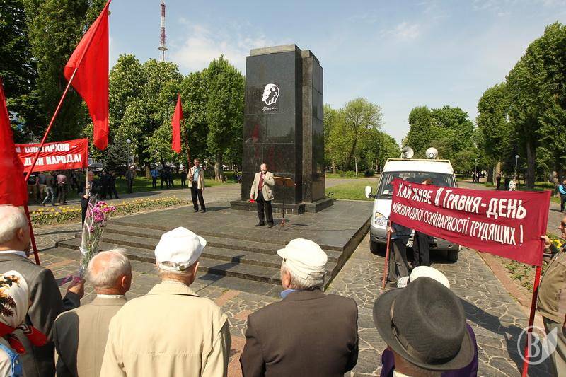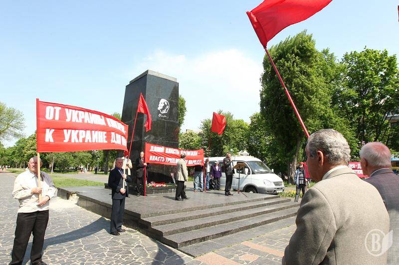 О 10:40 в четвер близько 150 прихильників Комуністичної партії і пройшли по проспекту Перемоги від видавництва " Деснянська правда" до постаменту , де раніше знаходився пам'ятник Леніну, на проспекті Миру в центрі міста.