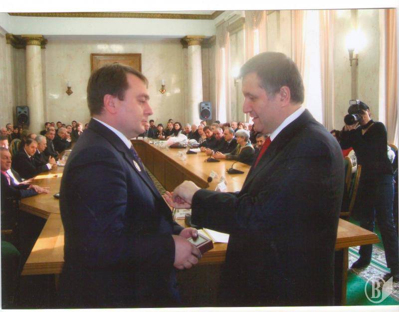 Вручення Арсеном Аваковим Володимиру Трофименку почесного звання «Заслужений юрист України»