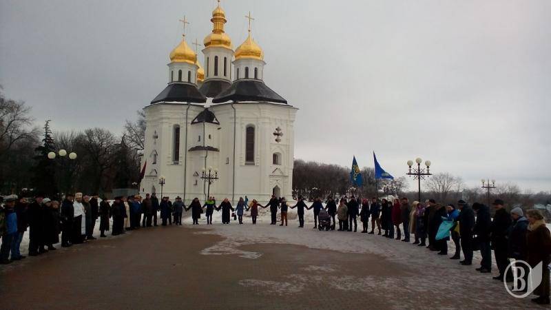 По завершенню урочистих подій люди взялися за руки в «живий ланцюг», продемонструвавши тим самим єдність українського народу та України загалом. Після чого заспівали Державний Гімн, пише val.ua.