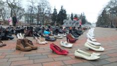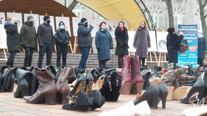 600 пар жіночих черевиків виставили на Алеї Героїв у Чернігові. Взуття принесли в рамках акції «16 днів проти насильства». Кожна пара символічна. Це згадка про жінок, які їх більше ніколи не одягнуть.