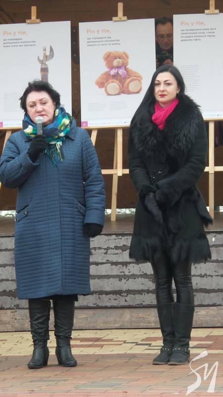 «Символічно ми починали тут на цій алеї, тут ми і закінчуємо. Така інсталяція проходила в декількох містах України і нарешті це здійснилося в Чернігові. Чому так символічно? Знаєте, домашнє насильство це завжди проблемо, і не тільки ці 16 днів, просто ці 16 днів ми проводимо потужні інформацій компанію, завдяки якій ми пропагуємо: «Не мовчіть, звертайтесь, дійте проти насильства і вам нададуть допомогу», - сказала Аліна Чемерис.