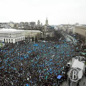 У центрі Києва, на Михайлівській площі, починають організовано збиратися прихильники кандидата у Президенти, лідера Партії регіонів Віктора Януковича.