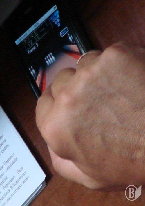 Інший депутат більшості "литвинівець" Сергій Павленко зайнятий грою в боулінг.
