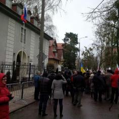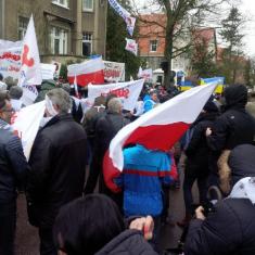 Кілька сотень поляків і українців Гданська в Польщі протестували сьогодні біля консульства Росії проти вторгнення військ імперського Кремля в Україну.
