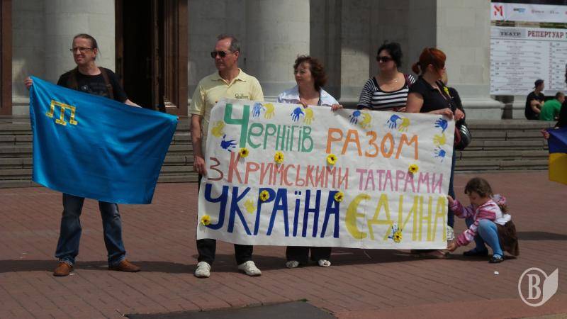 Жителі Чернігова вийшли підтримати кримських татар та єдність України. Десятки чернігівців вийшли 18 травня, у день жалобних заходів у Криму, приурочених до сумної дати -70-річчя початку депортації цього багатостраждального народу.