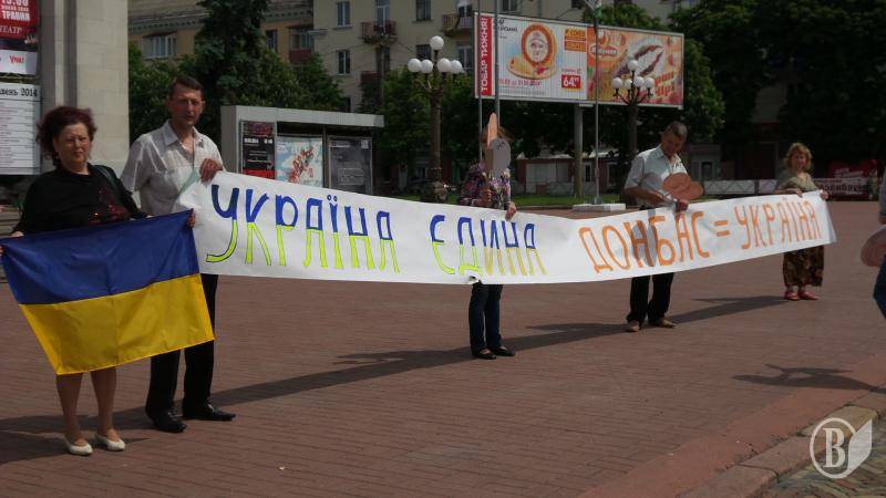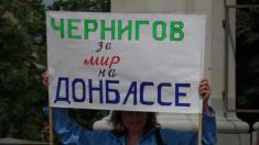 В руках інших активістів були гасла, які висловлювали підтримку жителям Донецької та Луганської областей у: «Україна – єдина, Донбас = Україна», «Донбас, почуй Україну», «Чернигов за мир на Донбассе».