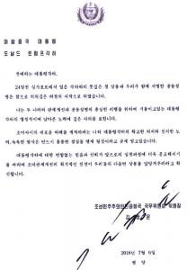 - Ким Чен Ин декларує вдячність Трампові за його зусилля з покращення відносин між державами;